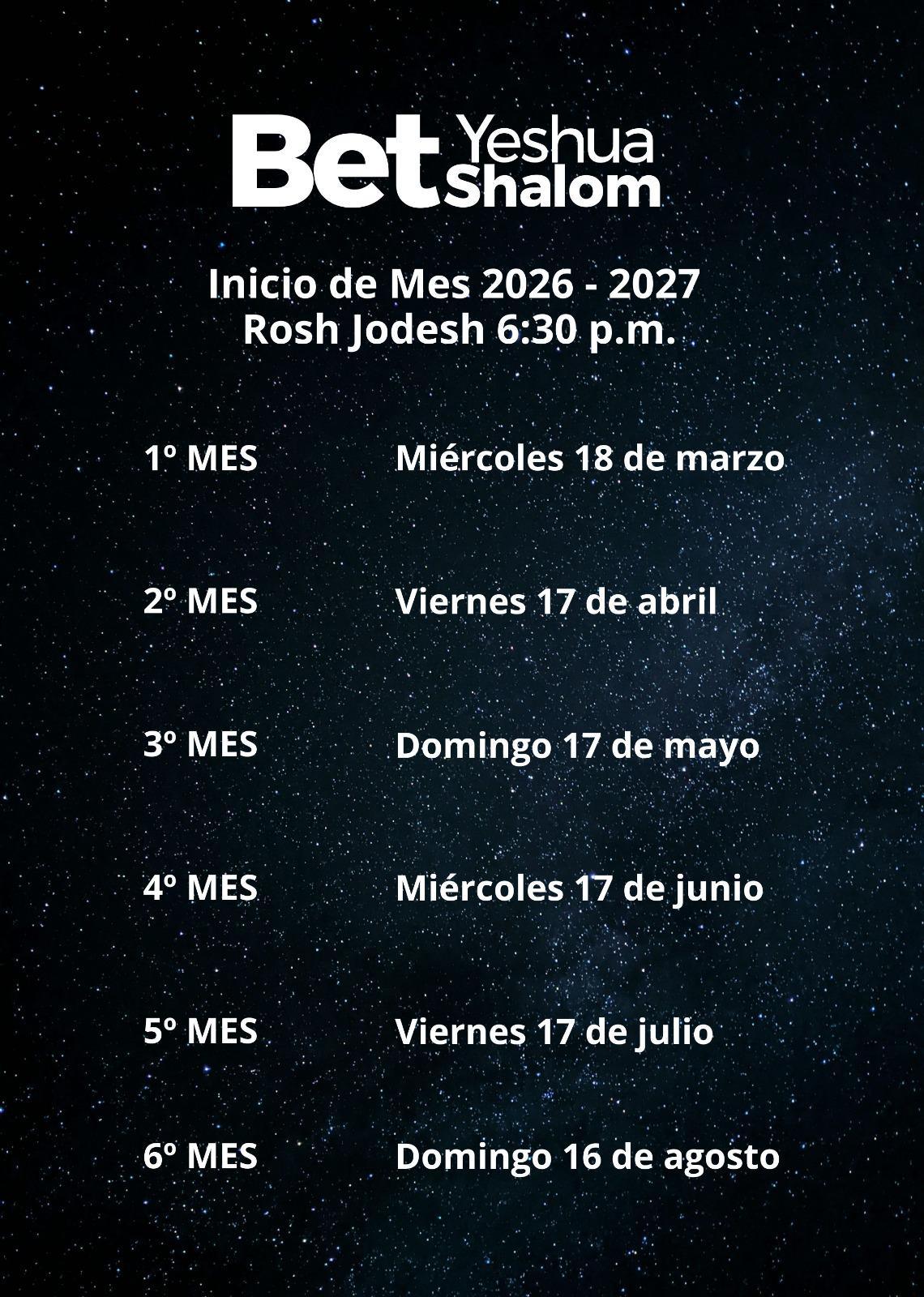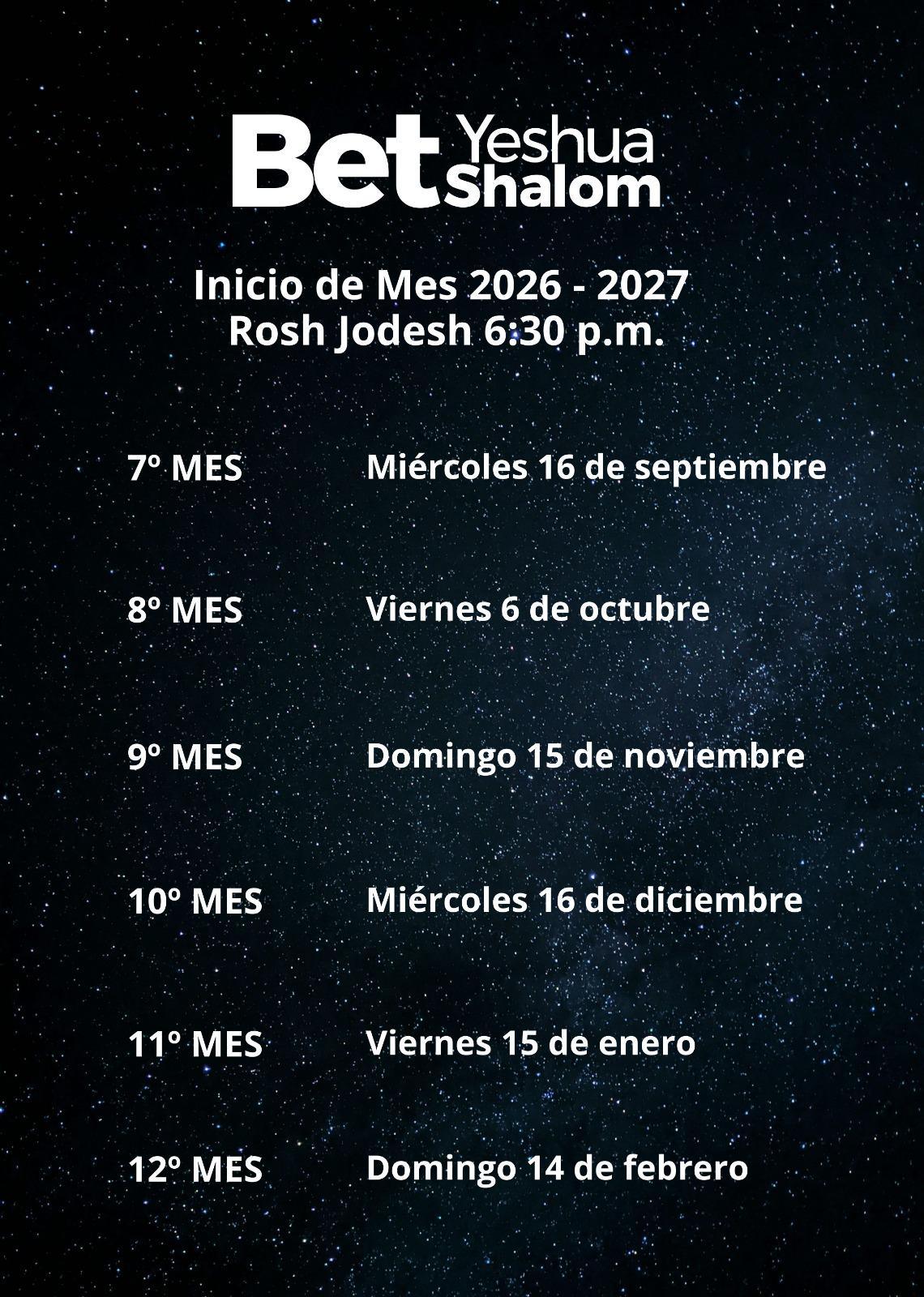 Rosh Jodesh (2026 - 2027)